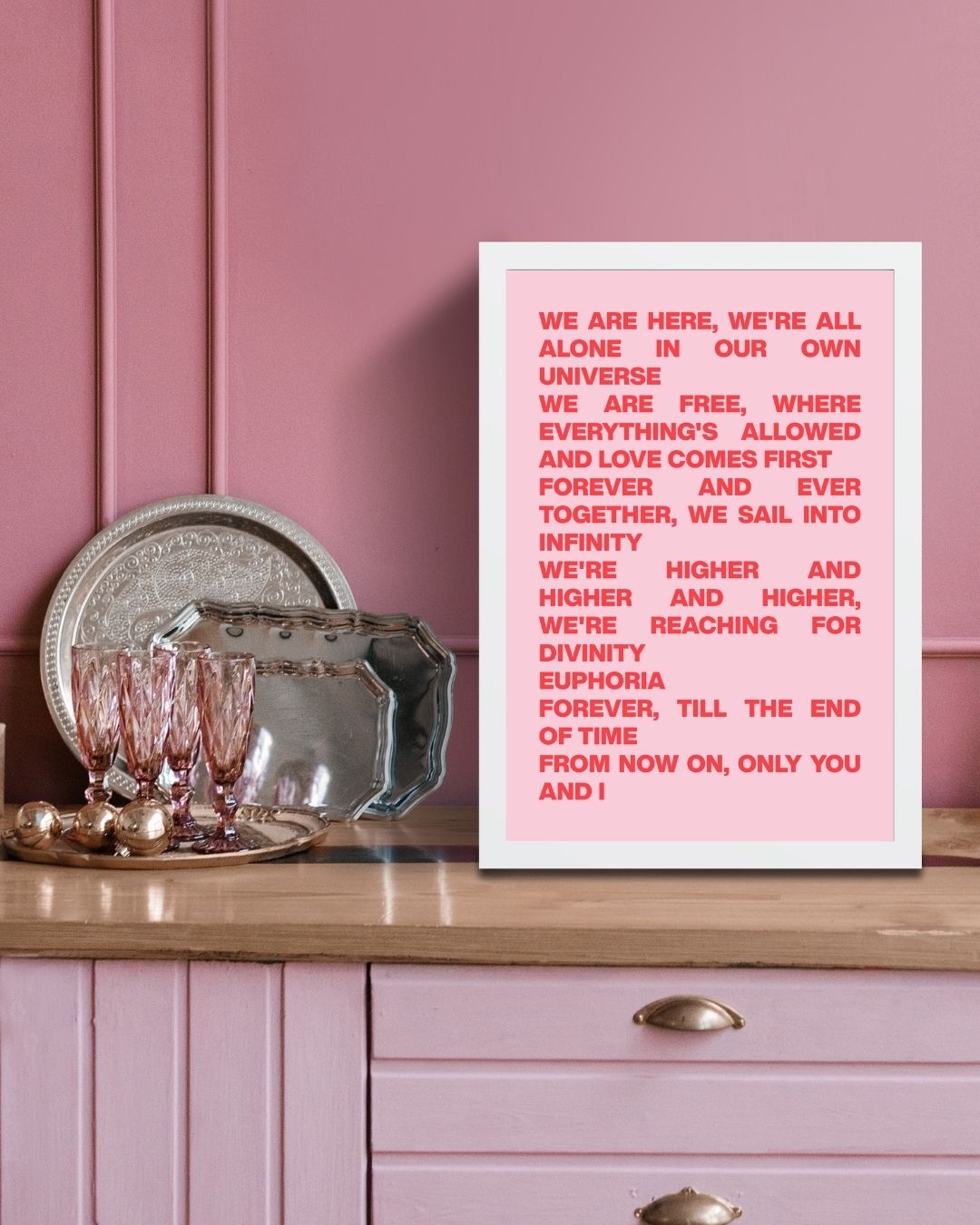 We get it - you want art on your walls that actually means something, but still looks chic with your space. That’s why all our prints are designed with fans in mind. Think: your fave movie line, the lyric you scream at the top of your lungs, or that inside-joke quote that just gets you. We take those little obsessions and turn them into prints that are subtle, stylish, and totally in sync with your decor vibe.